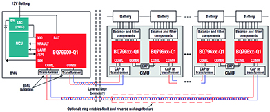 These high-voltage packs increasingly require more sophisticated technologies to report cell diagnostics in a safe, timely and reliable manner. One common design technique is to implement a distributed battery pack system, which supports high-cell count packs by connecting multiple battery monitors on separate PCBs.