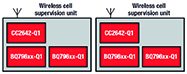 Figure 3 uses a more simplified representation of a CMU than in Figure 1, but adds a wireless receiver node to show that the CMU has an additional device to transmit cell data wirelessly back to the host. This enables the two CMUs shown in Figure 2 to be naturally isolated from one another.
