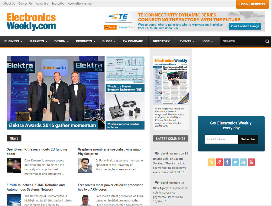 ElectronicsWeekly.com is the market-leading website globally for electronics professionals. It is the online arm of Electronics Weekly, the leading source of information in the electronics industry for more than 65 years.