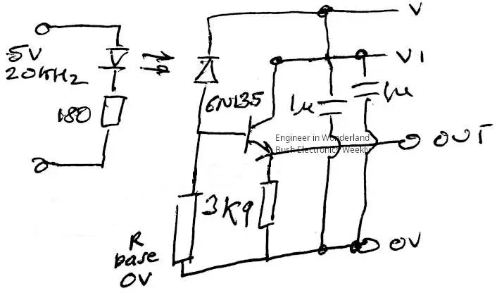 This isolator is for a motor speed controller interface and, in this case, the common emitter circuit would default the motor to ‘full-speed’ (rather then the safer ‘stop’) if the led stopped shining for any reason.